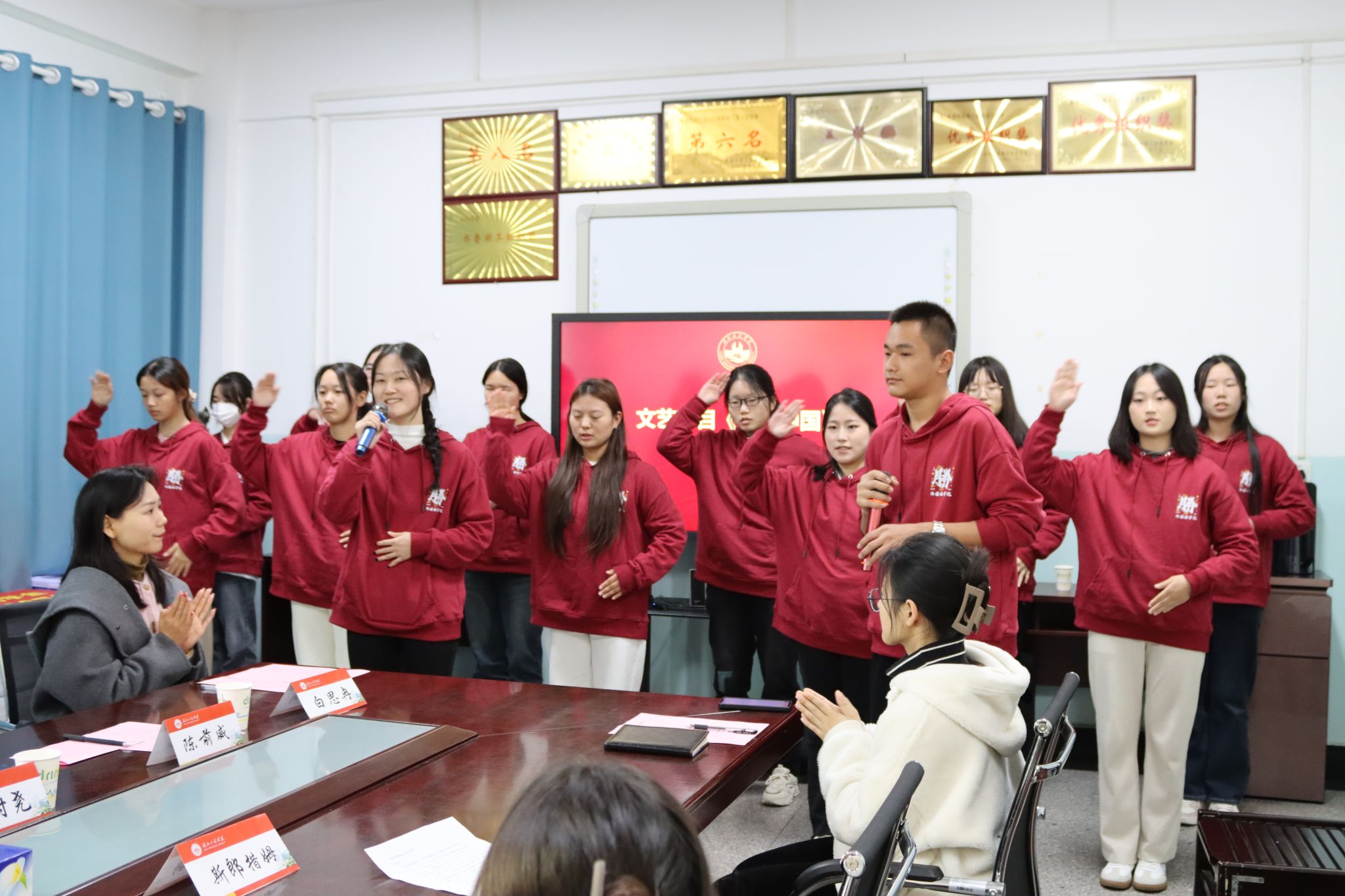 伟德BV1946官网美育工作室的同学们听闻捐赠活动举办的消息后,自发来到现场,为张磊员工献上了精彩的文艺节目《孝和中国》,用悠扬的歌声和灵动的手语舞向张磊员工表达敬仰与感激之情。
