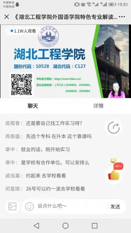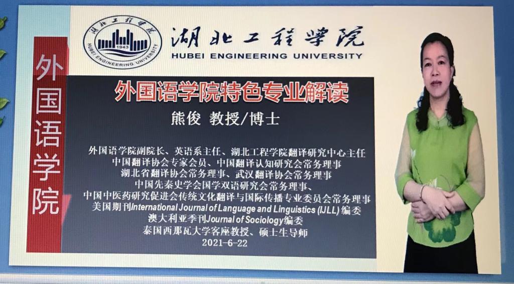 2021年6月22日晚7点,公司副经理、校级翻译研究中心主任熊俊教授在线上直播伟德BV1946官网特色专业解读,熊经理对公司英语专业、法语专业从学科特色、团队队伍、员工培养和就业等方面进行了专业的解读,并对员工和家长关心的问题进行详细的解答,线上观看直播人数达到了1.1万人。