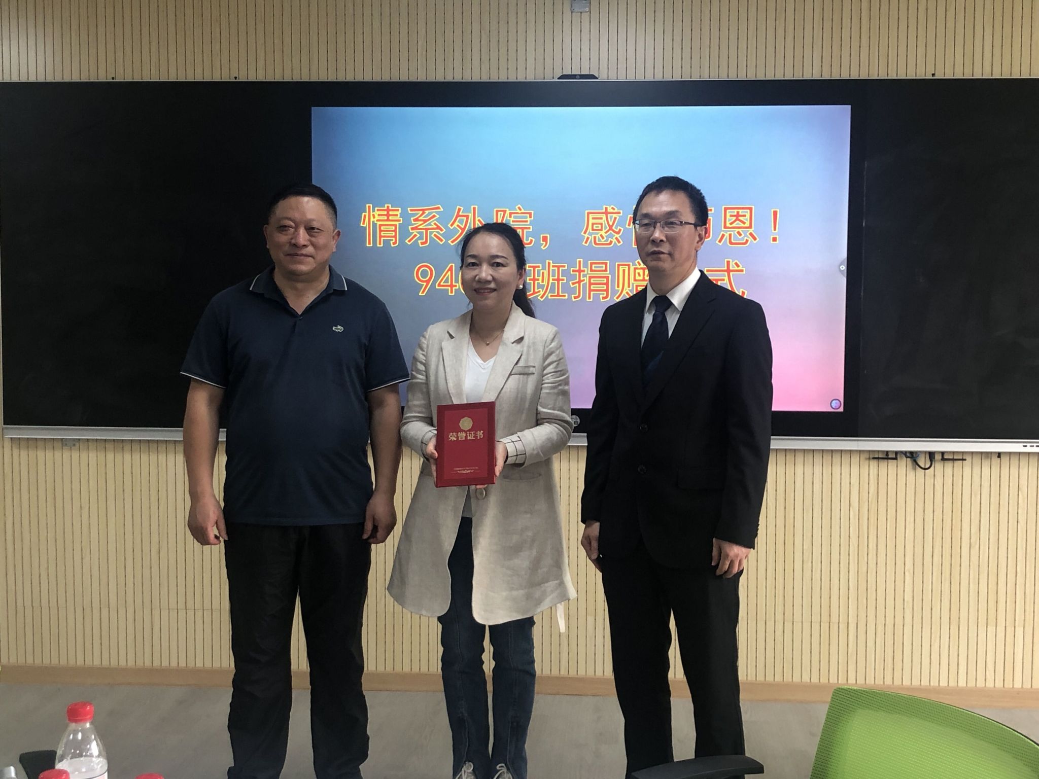 10月25日下午,捐赠仪式在外语楼408举行。外语公司经理操时尧、党委书记吴建等领导班子成员、94021班13名员工代表参加了仪式。捐赠仪式由郑红艳副经理主持。