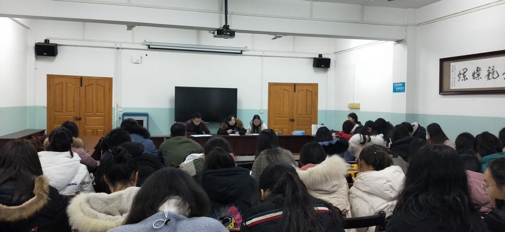 2月256点外国语公司三楼会议室召开了2019年新学期全体员工干部会议。公司分团委书记翟诗庆,辅导员郭洁、路小岚以及全体员工干部参加了此次会议。