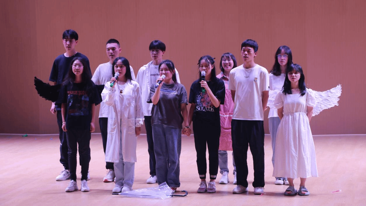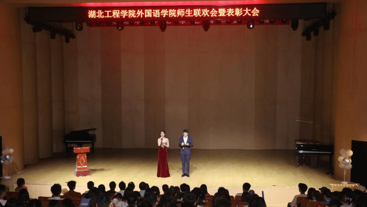 街舞社的成员们用精彩的表演向我们展示了他们的青春活力,拉开了整场晚会的序幕,同时,点燃了同学们的热情。在主持人的致辞中,晚会正式开始。本次晚会集表演、表彰和游戏于一体。表演节目形式丰富多样:心理话剧《救赎》引起现场观众的共情和思考;辅导员罗纯老师和张昌健同学一起演唱《夜空中最亮的星》,现场观众纷纷跟唱;《忆青衣》的参演者们再现舞姿;余思颖同学的钢琴独奏惊艳全场。在表彰环节,由党委副书记黄文娟老师宣读《伟德BV1946官网2023年度“五四”表彰文件》,党委书记吴建老师,经理操时尧老师,副经理熊俊老师、郑红艳老师分别为获奖员工颁发奖状,吴承恩同学代表获奖员工对外院全体领导老师表达了感谢。吴建书记认为此次大会的精彩程度超乎意料,赞扬了全体师生,同时提出了对外院的殷切盼望。本次大会最燃环节当属两个师生互动游戏:《年代金曲PK》和《七拼八凑》。特别是《年代金曲PK》中的抢答环节,《七拼八凑》中的搜集物品环节,赛事十分激烈。四支队伍成员个个都活力满满,干劲十足,台下观众也积极参与,现场一片欢声笑语。经过比拼,裁判计分,各队按照排名上台挑选礼物。