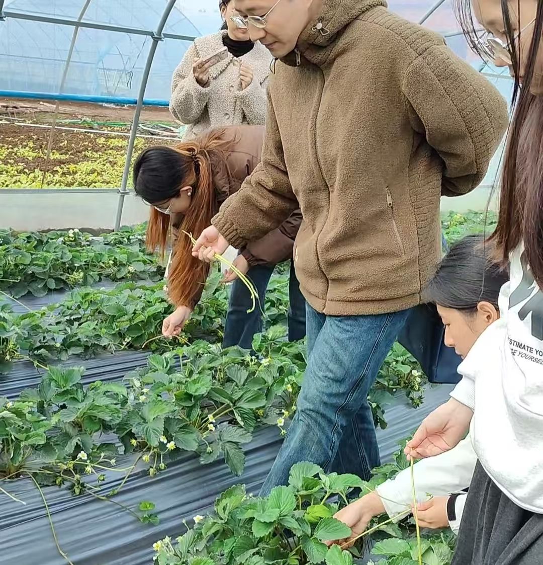 图为同学们学习拔除草莓匍匐茎