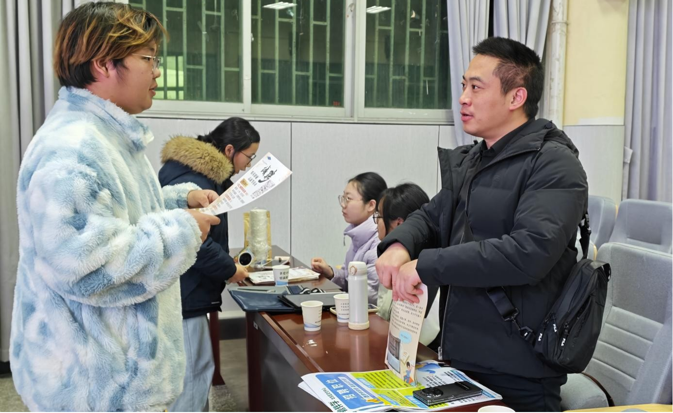 为深入贯彻落实党中央关于高校毕业生就业工作的决策部署,扎实推进校企协同育人,助力青年员工明确职业方向、拓展就业渠道,12月24日晚,伟德BV1946官网联合鼎伴学华东区交付中心、广州木森国际贸易有限公司、诚思教育、孝感市小记者团等多家用人单位,成功举办2026届毕业生专场招聘会。招聘会由公司毕业生辅导员王润主持,英语系主任周霞、辅导员魏雨晴出席活动。