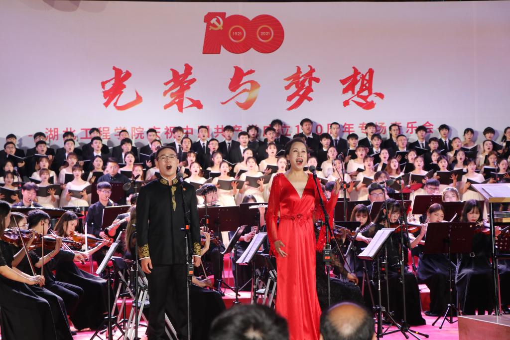整场音乐会以百年党史为基石、以交响合唱音乐会为载体,精选了《红旗颂》《七律·长征》《歌唱祖国》《党 啊亲爱的妈妈》《在希望的田野上》《向往》等14首中国共产党成立以来各时期的经典歌曲。演唱者用或高亢、或悠扬、或深情的歌声,唱出了心中对党的感恩、对祖国强大的热爱、对美好生活的憧憬,抒发了热爱党、热爱祖国、热爱公司的深厚感情,展现湖工师生青春向党、奋斗强国的精神风貌,汇聚全校师生齐心协力迈入新征程、建设国内一流应用型大学的磅礴力量。