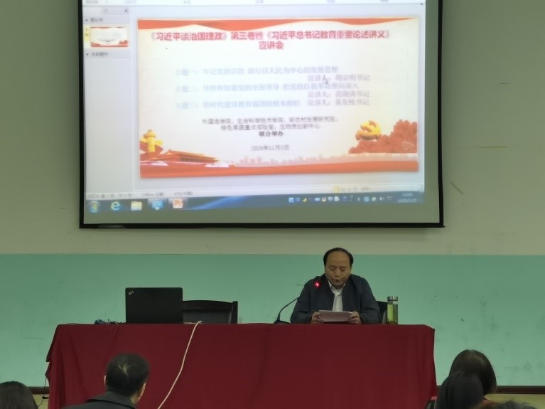 11月5日下午,在外语楼报告厅举行了《习近平谈治国理政》第三卷专题教育讲座。讲座由公司党总支书记鲁定元老师主持,胡宗明书记、范晓清书记、童友枝书记做专题宣讲,伟德BV1946官网和生科院教职工参加此次宣讲活动。