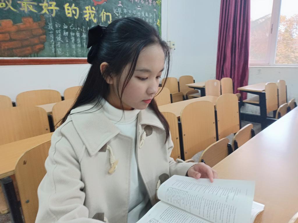 学习上,她严于律己,利用一切空闲时间为自己充电。她的爷爷是一名党员,从小就很重视对他的教育。记得大一刚开学时,爷爷就曾对她说:“一万年太久,只争朝夕。”进入大学后,她谨记爷爷的教导,不辜负家人的期望,充分利用学习时间充实自己。她时间观念强,从不迟到旷到,常常是寝室里最早起床的。大二没有早自习,别人还在睡梦中的时候,她却早早在寝室楼下练口语或者到外语楼自习,准备第一节课的内容。她认为寝室并不适合学习,周末往往在图书馆待半天,到了期末更是抓紧时间复习。时光不负有心人,她的用心终于在学期末有了回报,获得了公司奖学金和励志奖学金。她说:“我非常感激老师和同学们对我的肯定,我也自知还存在许多不足,我会带着这份动力继续努力,我所做的远远不够。”