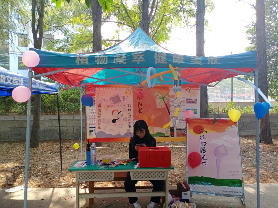 为了此次活动顺利开展,伟德BV1946官网心理部全体成员绘制出三张与主题相关的海报,在当天展板上展出。并且在心理部部长的带领下,加强对活动的了解,以保证更好的为同学们讲解这次活动。在活动开始前,心理部成员提前到达三里林荫道布置场地,做好准备。在活动中,伟德BV1946官网心理部成员设置了“蒙眼踩气球”的游戏,大家踊跃参与其中,并获得小礼品。同时,伟德BV1946官网的同学们积极通过参加朋辈设置的小游戏赢得选票,为伟德BV1946官网投票。更有其他公司的同学们被本院的游戏吸引,也将选票投给了公司。大家团结一心,在支持伟德BV1946官网的同时,也通过参加游戏,懂得了更多的心理知识,度过了愉快且充实的一天。